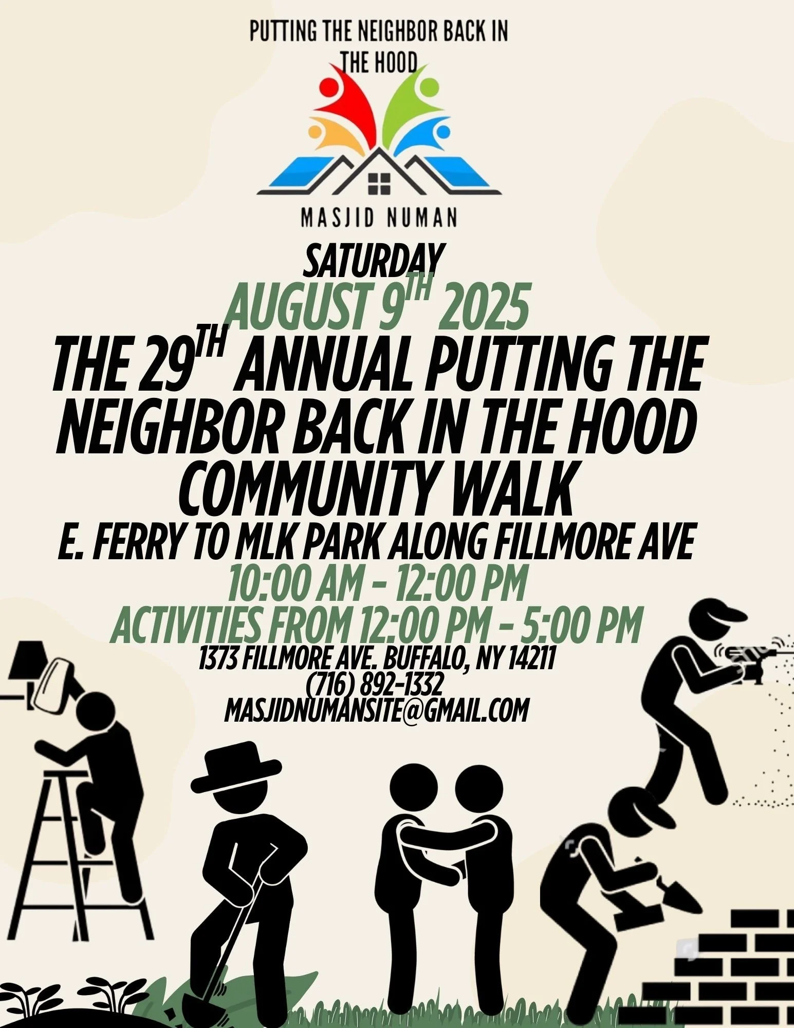 Putting the Neighbor Back in the Hood (PTNBH) started in 1996 as a community walk on Fillmore Ave. in East Buffalo, and has now expanded to an ini dedicated to improving neighborhoods and celebrating good neighbors in the City of Buffalo.